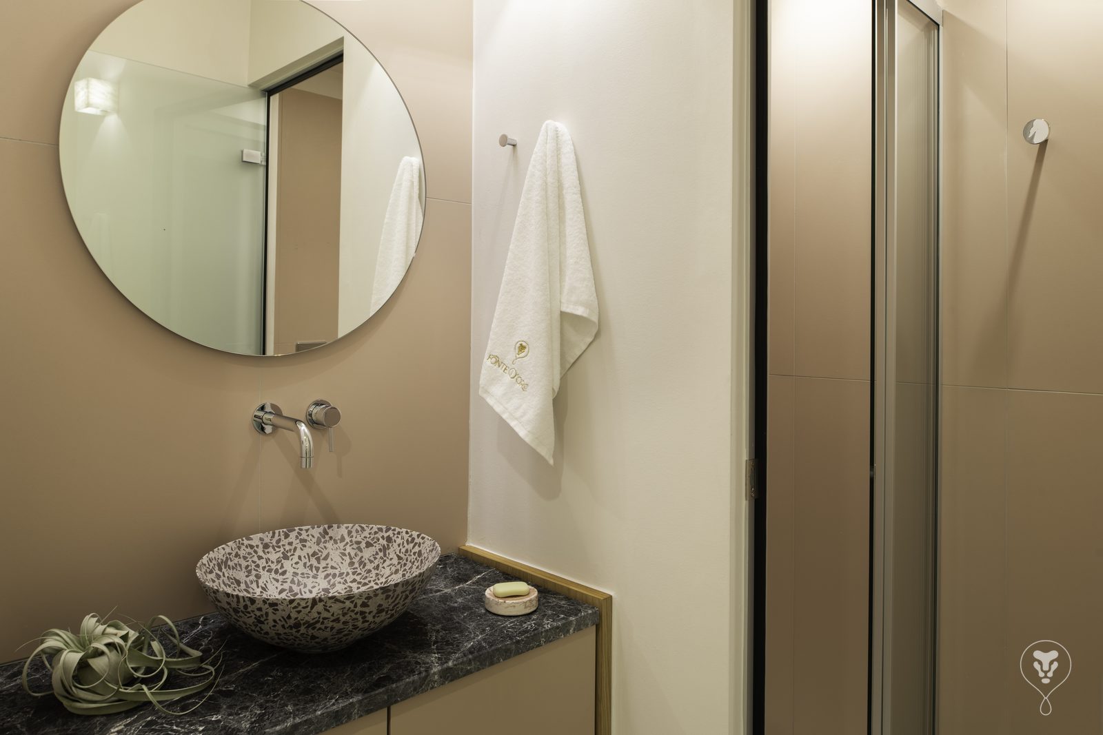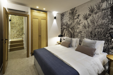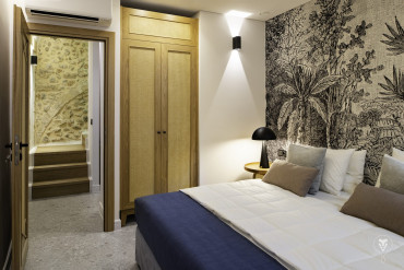 “Anastasia”, is the second accommodation to meet and enter from the ground floor. The maisonette has two entrances, one on the ground floor and one on the first floor. It covers 55m2, renovated also in modern design, Air-Conditioned. On the ground floor there is a bedroom with a Super King size bed (180 x 200cm) and the bathroom with shower.