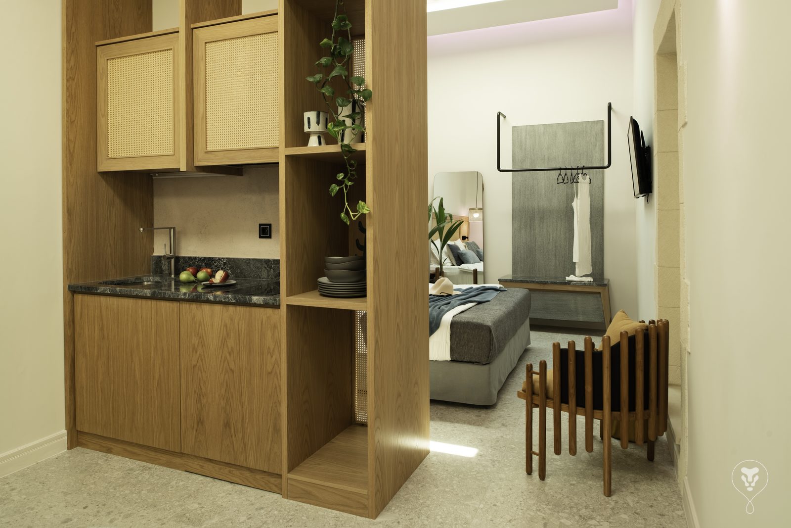 As we continue on the upper floor, we find the open space kitchenette and the second bedroom, also with a Super King size bed (180 x 200cm).